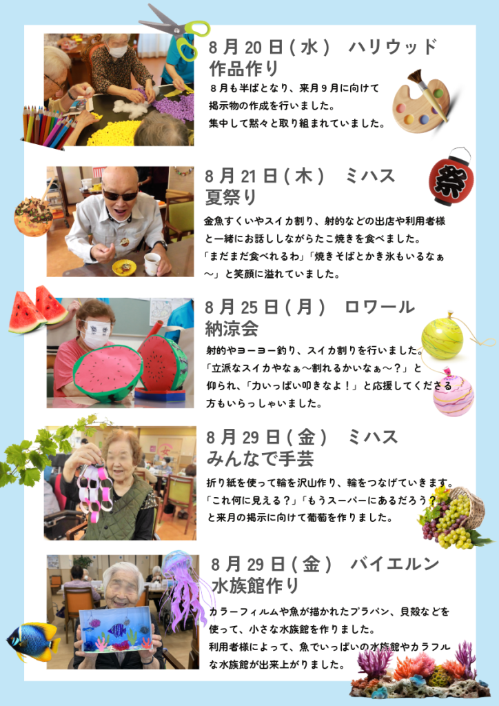 8月は、どのようなレクリエーションが行われたのでしょうか?🤔