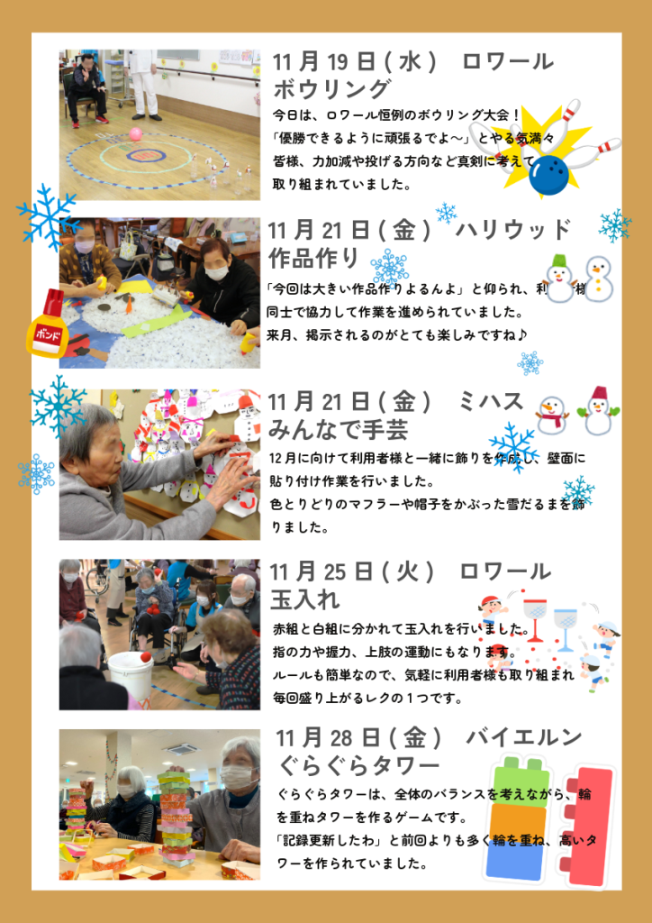 11月は、どのようなレクリエーションが行われたのでしょうか?🤔