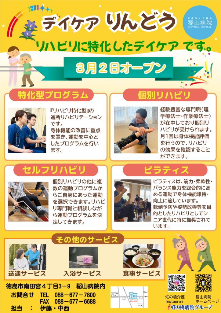 このたび、通所リハビリテーション「デイケアりんどう」が3月2日(月)にオープンいたします。